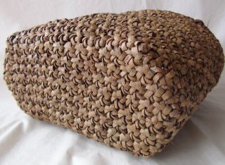 自然素材での篭編み文化の継承、普及目的で「山ぶどう篭編み講習」を年数回行っています。 今回の講師は篭編みの第一人者の山形で「ギャラリーかご」主催する落合なほ先生です。かご編み講習も78回と多くの回を重ねてまいりました。これもひとえにご参加いただいた皆様のおかげです。いろいろな編み方の講習をやってまいりましたが今回はかご編みでは誰もが憧れる「花編み(花結び)篭」をとり上げました。「花結び篭」は編み技術が高く時間がかかるために短期間の講習では取り上げることはほとんど見受けられません、学ぼうとしても時間と費用が他の編み方に比べて何倍もかかるために容易に手を出すことは出来ません。この「花結び篭」を講習会で取り上げるにはいろいろな工夫が必要です。まずは講習期間をこれまでの2日間から3日間にしました。3日間でもとんでもなく短期間です。3日間で編み込むことのできるように篭のサイズを小さくしました。編み込む材質を山ぶどうからクルミ材にしました。クルミ材は山ぶどうに比較して均一なひごができ編み時間の短縮ができます。さらに篭本体と持ち手を切り離して事前に持ち手をつくり篭本体に後付けするやり方を用いることにしました・そうすることで花結びかご編み時間を多くとることができます。これらを駆使して何とか3日間での完成を目指します。また落合流花結び技法も見逃せません、長年培った編み技術を存分に発揮してこの講習に臨んでいただけるからでです。今回の講習は花結びという編み技術を学ぶというところに焦点を当てての講習となります。楽しみな3日間となることと想像します・皆様のご参加をお待ち申し上げます。